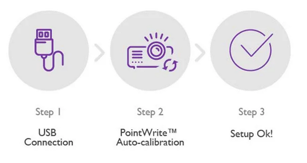 PointWrite™ automatically calibrates and saves its settings the moment it is plugged into a computer’s USB port. PointWrite™ then remains ready without any manual configuration or complicated training given to the teachers. Additionally, MH856UST’s interactive sensor guarantees reliable auto-calibration in any ambient lighting.