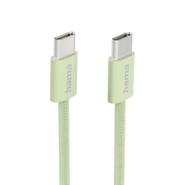Hama "Fabric" Charging Cable, USB-C - USB-C, 1 m, Nylon, green