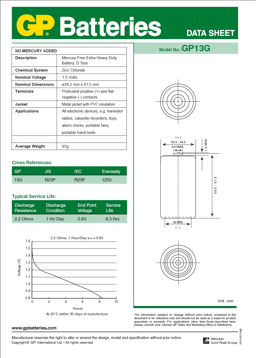 Zinc carbon battery GP R20 13G-S2 GREENCELL 2 pcs. 1.5V