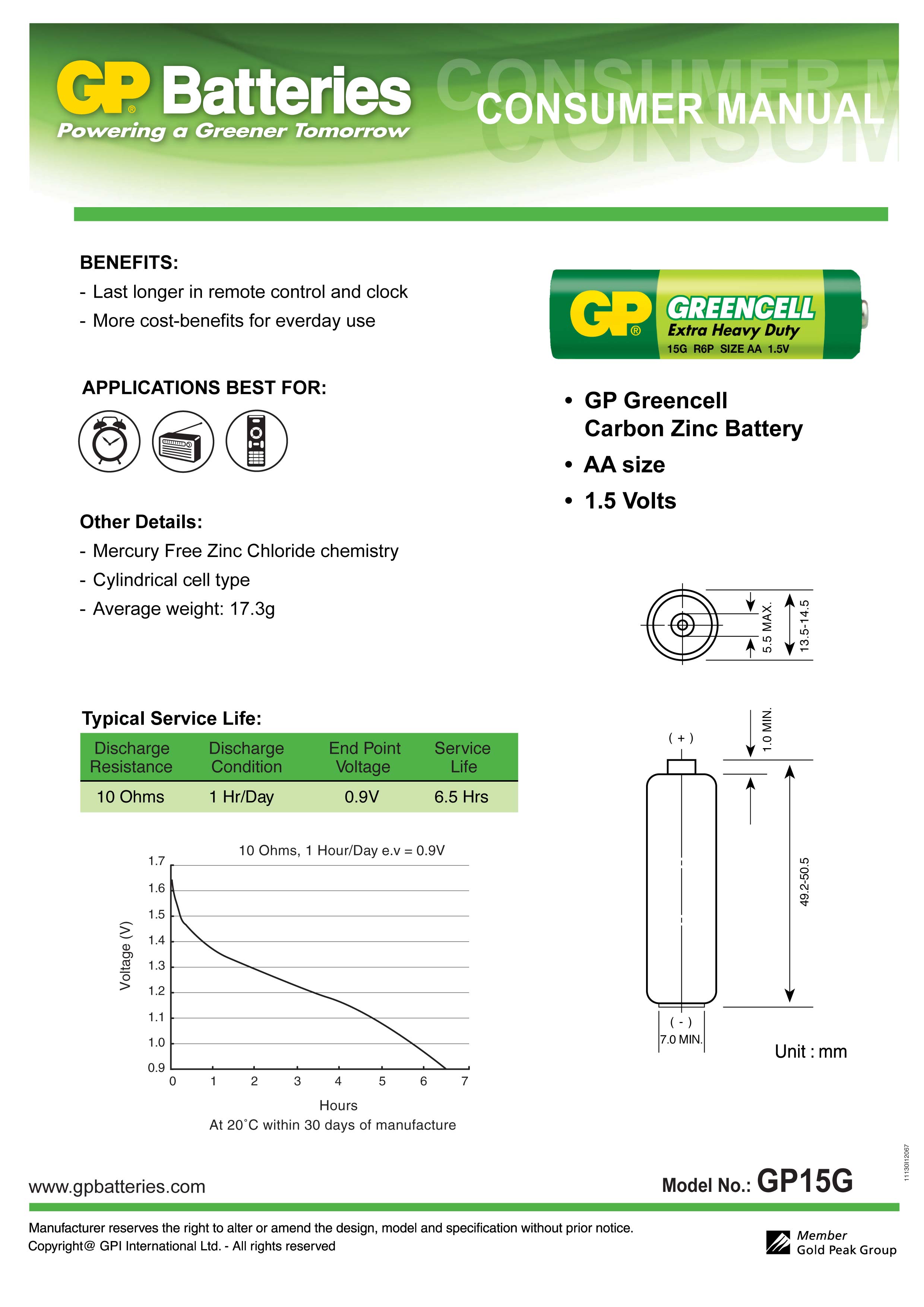 | Manufacturer | GP BATTERIES |