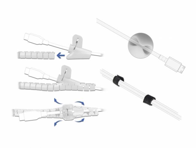 This cable management set by Delock is perfect for keeping exposed cables tidy, protected and clear, e.g. in the office or at home.
