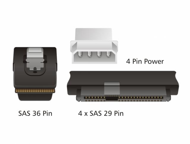 Delock Cable mini SAS SFF-8087 > 4 x SAS SFF-8482 + power 0.5 m