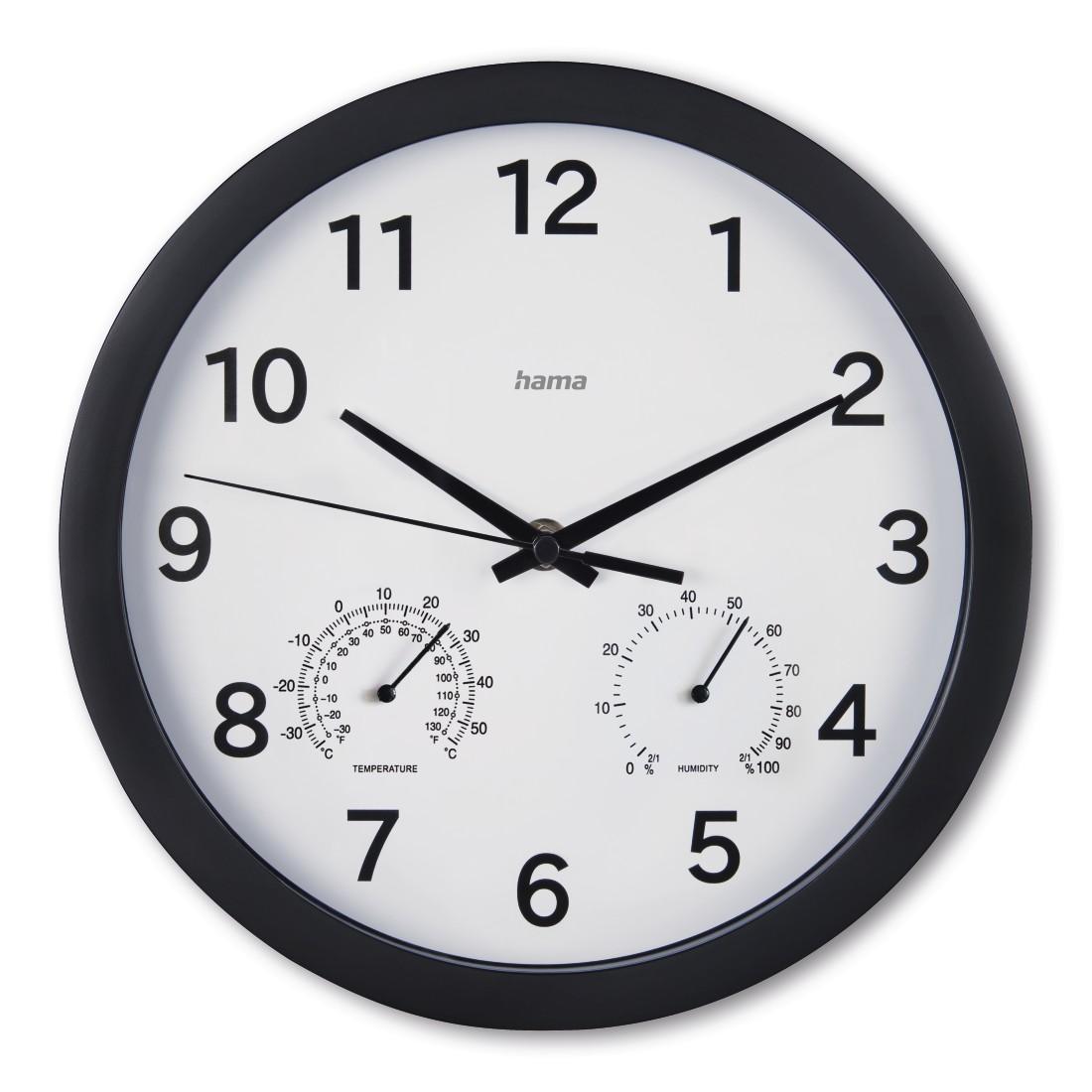 Hama "Malta" Wall Clock, Ø 25 cm, w. Thermometer / Hygrometer, No Ticking, black