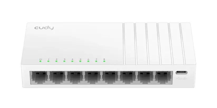 A compact 8‑port Gigabit switch powered via USB‑C, the Cudy GS108U delivers fast wired connectivity, extended transmission distance, and flexible placement thanks to its lightweight design and power‑bank compatibility.