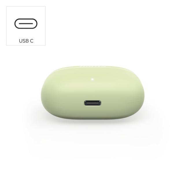 С кутия за зареждане: това означава, че слушалките могат да се зареждат до 3 пъти, докато сте в движение. Кутията за зареждане се зарежда чрез USB-C връзка