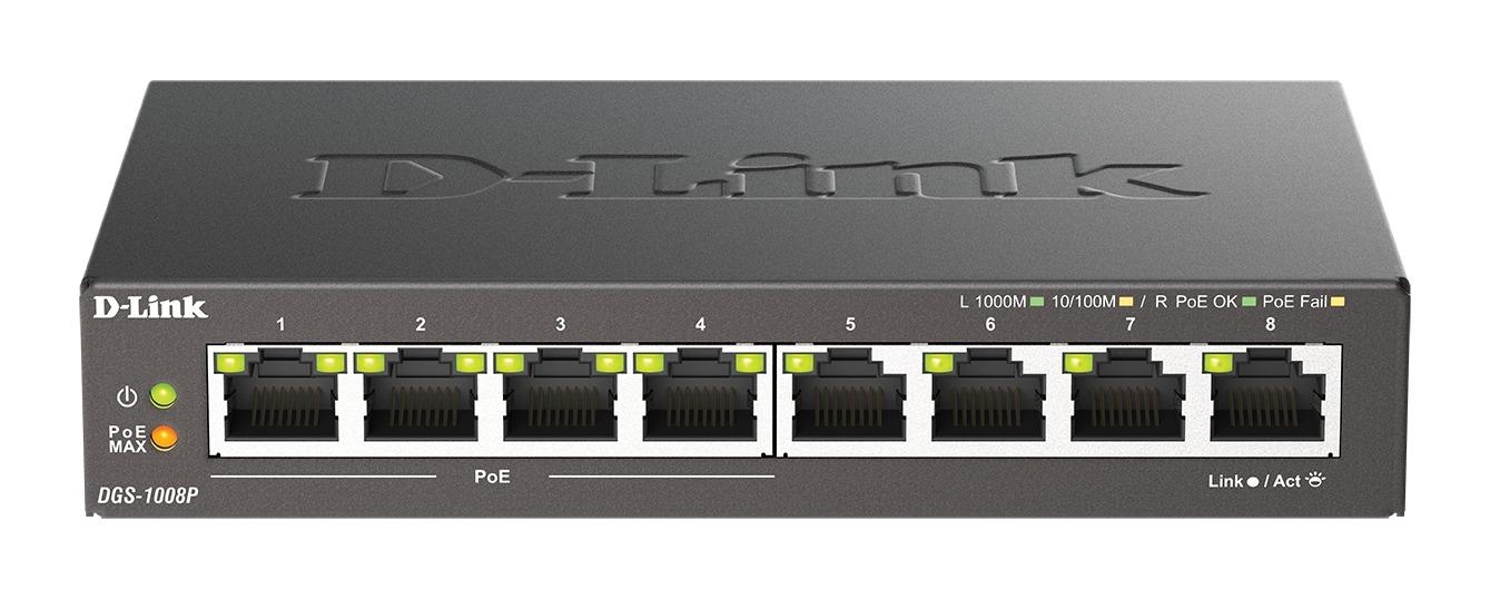 Суич D-Link DGS-1008P, 4x PoE + 4 x стандартни, 10/100/1000, Gigabit,