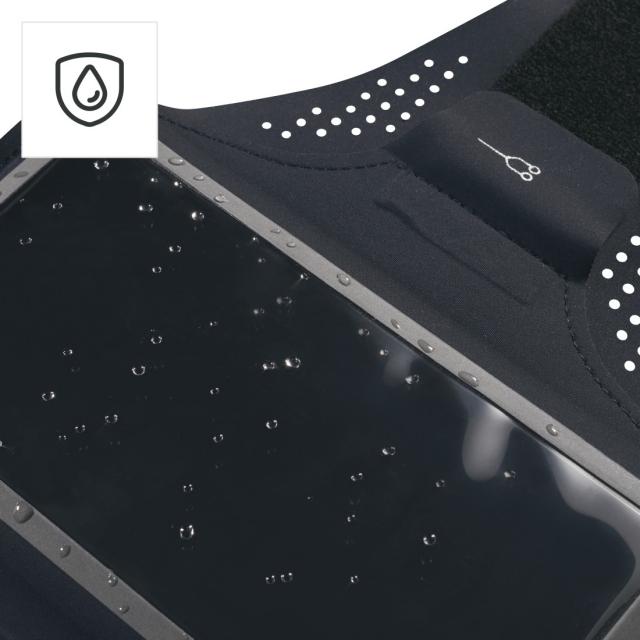 Sporty sound booster: With the arm pocket made from rugged Lycra for your upper arm, you’ll always have your favourite playlists with you and can also reach them while out jogging