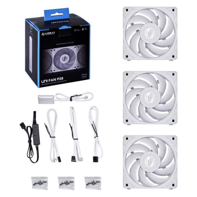 Комплект 3 броя Вентилатор Lian Li UNI P28 - 120mm, Бял