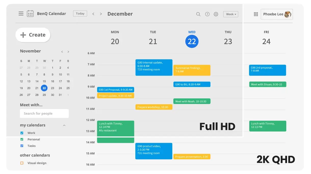 С 2K QHD резолюция, BL3290QT показва повече пространство за съдържание на екрана, като същевременно предоставя зашеметяващи детайли дори с по-малки шрифтове.