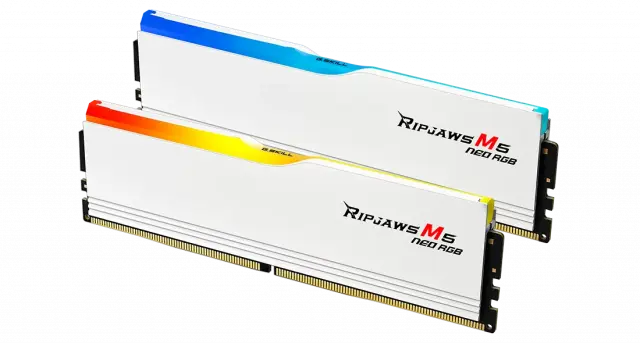 Ripjaws M5 Neo RGB е производителна DDR5 DRAM серия памет, предназначена за AMD AM5 платформи. Отличаващ се с матово черни или матово бели алуминиеви радиатори и адаптивно RGB осветление, Ripjaws M5 Neo RGB е идеалният комплект памет за голямо разнообразие от компютърни компилации и теми.