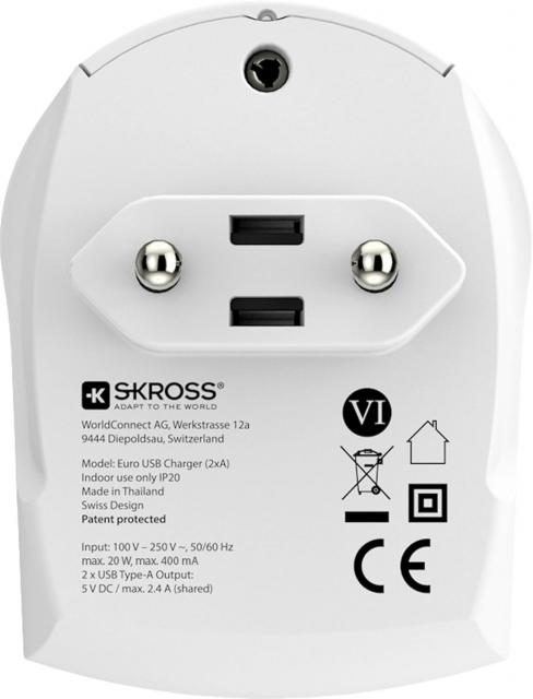 Skross Euro USB Charger 1.302421, 2 x USB-A, 2.4A