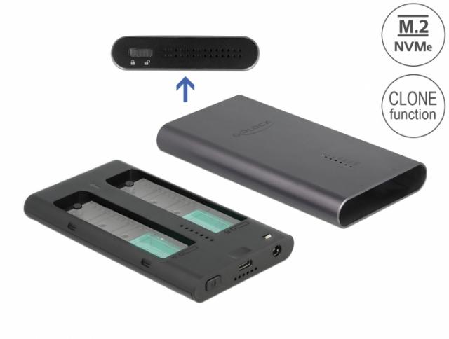 Външно чекмедже Delock, За 2 x M.2 NVMe PCIe SSD, USB-C, Клониране