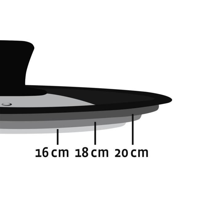 - Благодарение на специалния дизайн на капака, който заменя три размера капака и може да се използва за тенджери и тигани от 16 до 20 cm