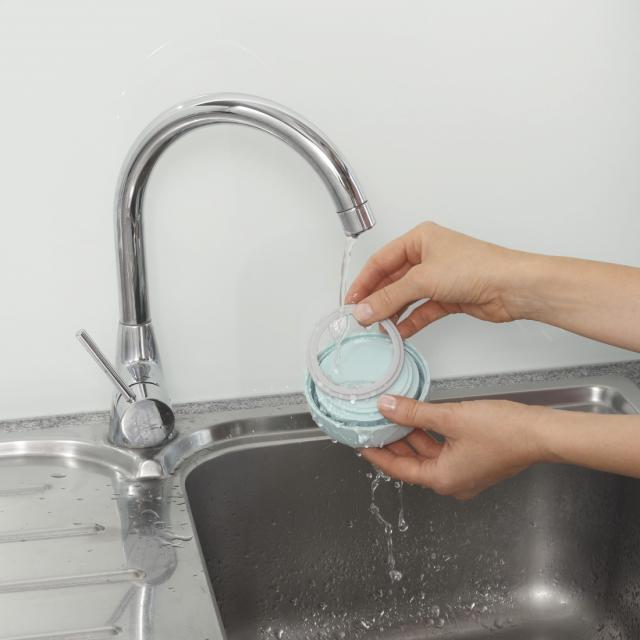 The thermo lunch cup has double wall insulation: hot dishes stay hot for 6 hours, cold ones for 9.